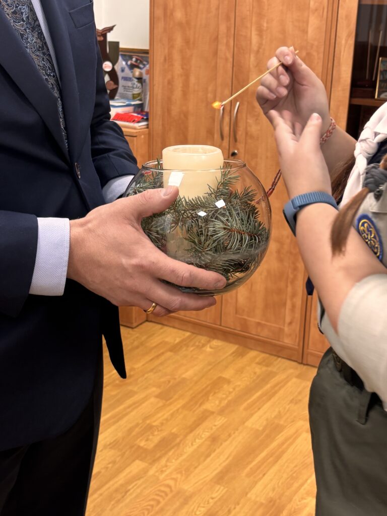 Betlejemskie Światło Pokoju od lat stanowi symbol miłości, dobra i pokoju, który jednoczy ludzi ponad wszelkimi podziałami. W dniu dzisiejszym Adam Zaremba – Zastępca Dyrektora Małopolskiego Ośrodka Ruchu Drogowego w Nowym Sączu – odebrał Betlejemskie Światło Pokoju przekazane przez harcerzy z Hufca ZHP Nowy Sącz.