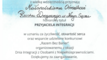 Małopolski Ośrodek Ruchu Drogowego w Nowym Sączu otrzymał wyróżnienie „Przyjaciel Integracji”, przyznanego za wspieranie rozwoju dzieci z...