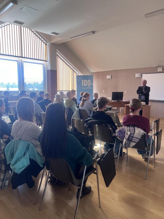 Przedstawiciele Wydziału Ruchu Drogowego Komendy Miejskiej Policji w Nowym Sączu – mł. asp. Artur Goliński omówił z nimi najczęstsze przyczyny wypadków drogowych z udziałem młodych kierowców. Przestrzegał przed błędami jakie najczęściej popełniają młodzi, niedoświadczeni kierowcy i odpowiadał na pytania. Następnie przeprowadzona została część warsztatowa gdzie uczniowie mogli sprawdzić działanie alkogogli, a Pani Psycholog zaprezentowała urządzenia na jakich badana jest sprawność kierowców. Dotyczy to zarówno kierowców zawodowych, jak i tych, którzy przekroczyli dopuszczalną przepisami liczbę punktów karnych. Cieszymy się, że młodzi ludzie chętnie biorą udział w takich spotkaniach i mamy nadzieję, że dzięki temu uświadomią sobie, że uzyskanie prawa jazdy to dopiero początek przygody z motoryzacją.